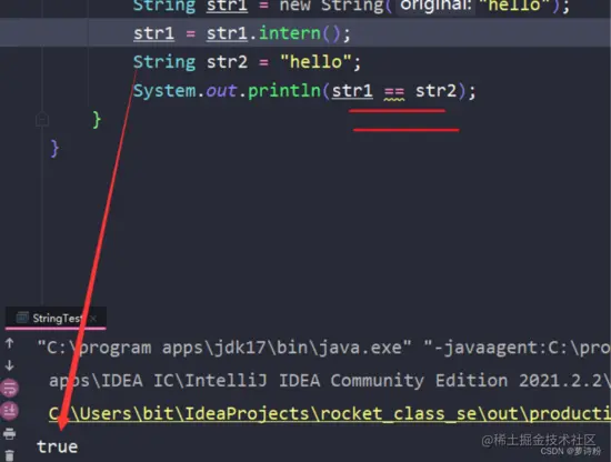 只要接收一下调用intern方法的返回值,就会返回true;
