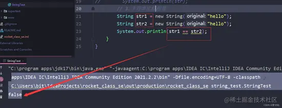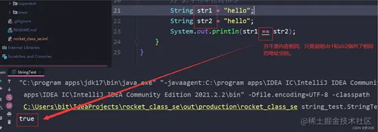 下图产生了两个对象,两块地址空间,使用==返回的就是false