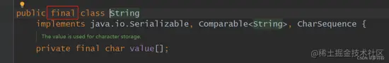 我们可以看到String内部的字符数组是被封装起来的,String类的外部无法访问到这个字符数组,更何谈改变字符串的内容