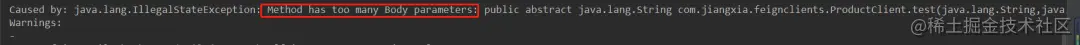 但是项目启动时,发现会报下面的错误,意思是:test方法有太多的参数。说明这种方法并不可行。