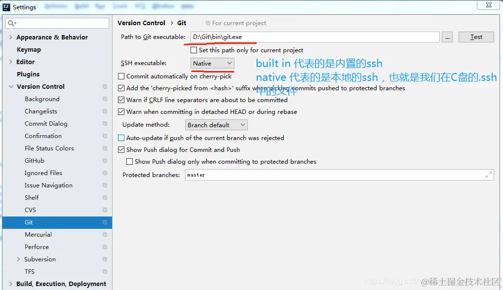 最后我想到了用ssh的方式,首先必须保证本地有git,而且配置有ssh协议,并且和github建立关系,如果没有,或者不确定,可以查看博客blog.csdn.net/u014103733/…,建立好关系之后(我使用的编译工具是idea,其它工具不能确定),我们配置idea和本地git的关联。