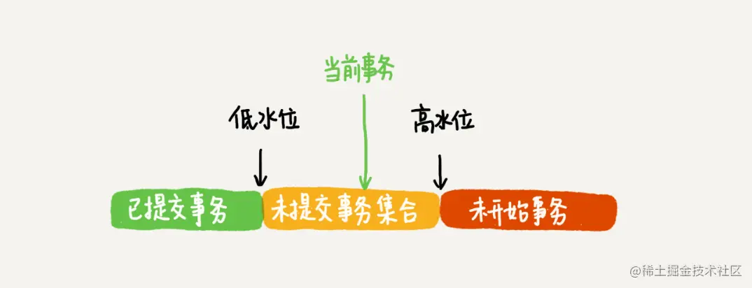 数组里面id最小的值即为低水位,最大的值+1记为高水位,这便是一致性视图。