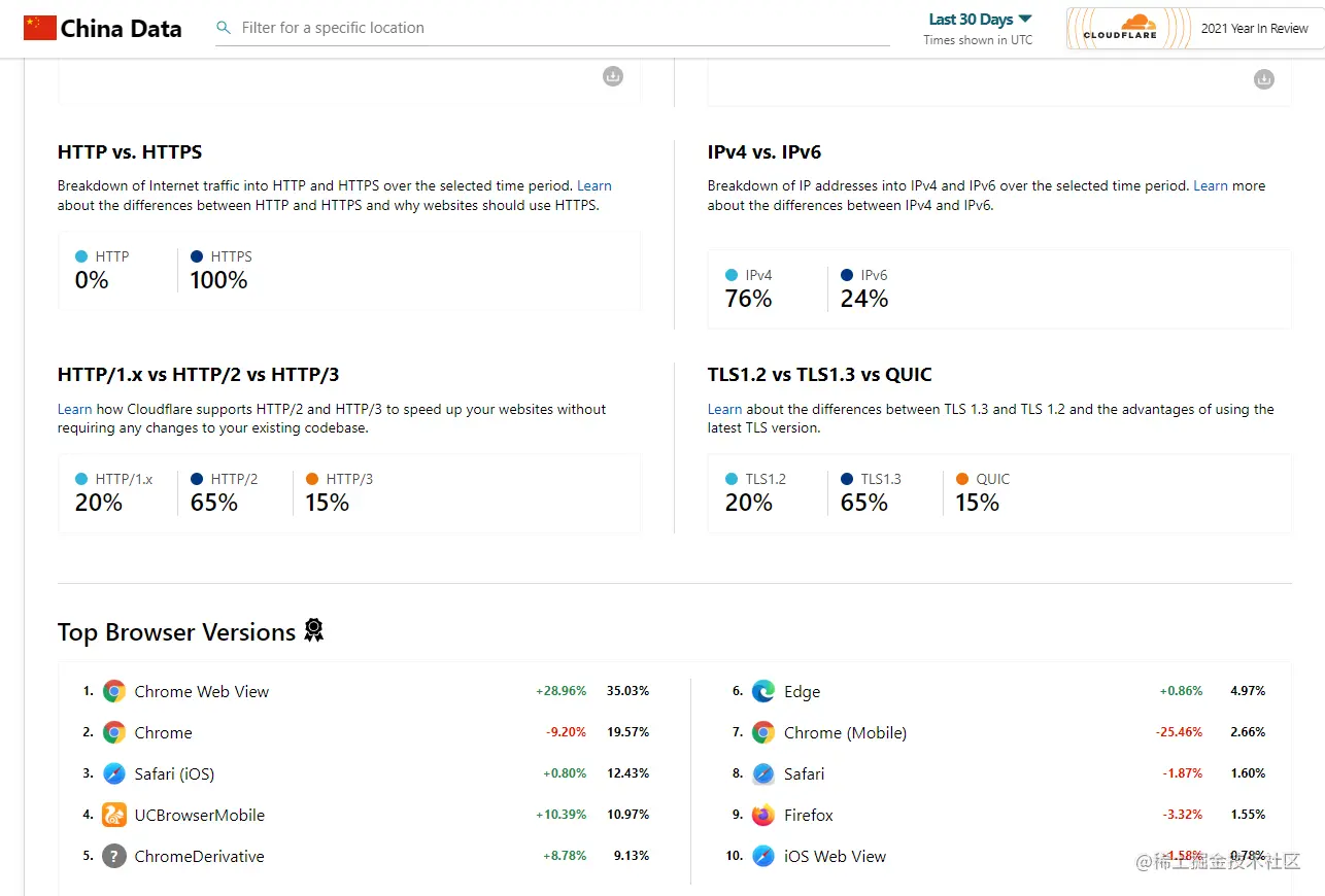 当然,在 HTTP/3 RFC 的发布之后,HTTP/3 的占用率也会越来越高。