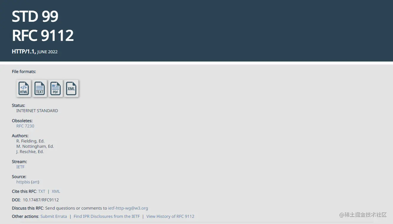 RFC 9112 在 2022 年 6 月发布,之前的 RFC 7230 已过时。