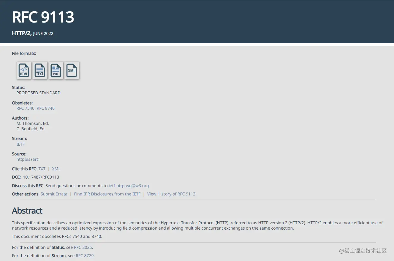 RFC 9113 在 2022 年 6 月发布,之前的 RFC 7540 已过时。