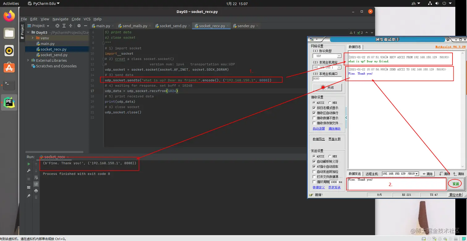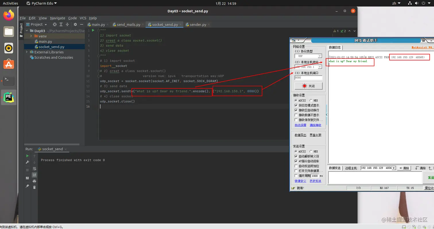 实验环境:Ubuntu20.10+Python3 & Windows10 + NetAssist(该链接提供软件下载)