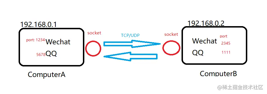 类比例子: IP和端口号就如同寄快递的目的地址,TCP/UDP如同挑选了快递公司,socket就相当于快递员,实现快递的收发。