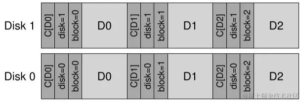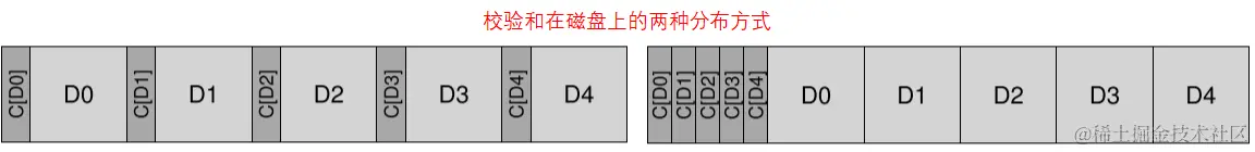 那么如何在存储系统中使用校验和呢?通常的做法是给每一个扇区或者块一个校验和,校验和的存储如下图所示。