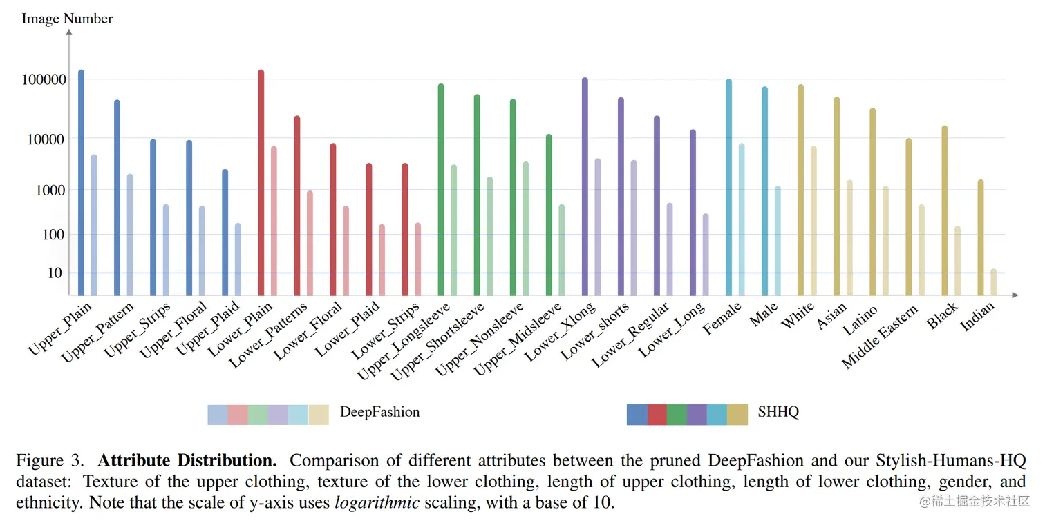 论文摘要:Unconditional human image generation is an important task in vision and graphics, which enables various applications in the creative industry. Existing studies in this field mainly focus on "network engineering" such as designing new components and objective functions. This work takes a data-centric perspective and investigates multiple critical aspects in "data engineering", which we believe would complement the current practice. To facilitate a comprehensive study, we collect and annotate a large-scale human image dataset with over 230K samples capturing diverse poses and textures. Equipped with this large dataset, we rigorously investigate three essential factors in data engineering for StyleGAN-based human generation, namely data size, data distribution, and data alignment. Extensive experiments reveal several valuable observations w.r.t. these aspects: 1) Large-scale data, more than 40K images, are needed to train a high-fidelity unconditional human generation model with vanilla StyleGAN. 2) A balanced training set helps improve the generation quality with rare face poses compared to the long-tailed counterpart, whereas simply balancing the clothing texture distribution does not effectively bring an improvement. 3) Human GAN models with body centers for alignment outperform models trained using face centers or pelvis points as alignment anchors. In addition, a model zoo and human editing applications are demonstrated to facilitate future research in the community.