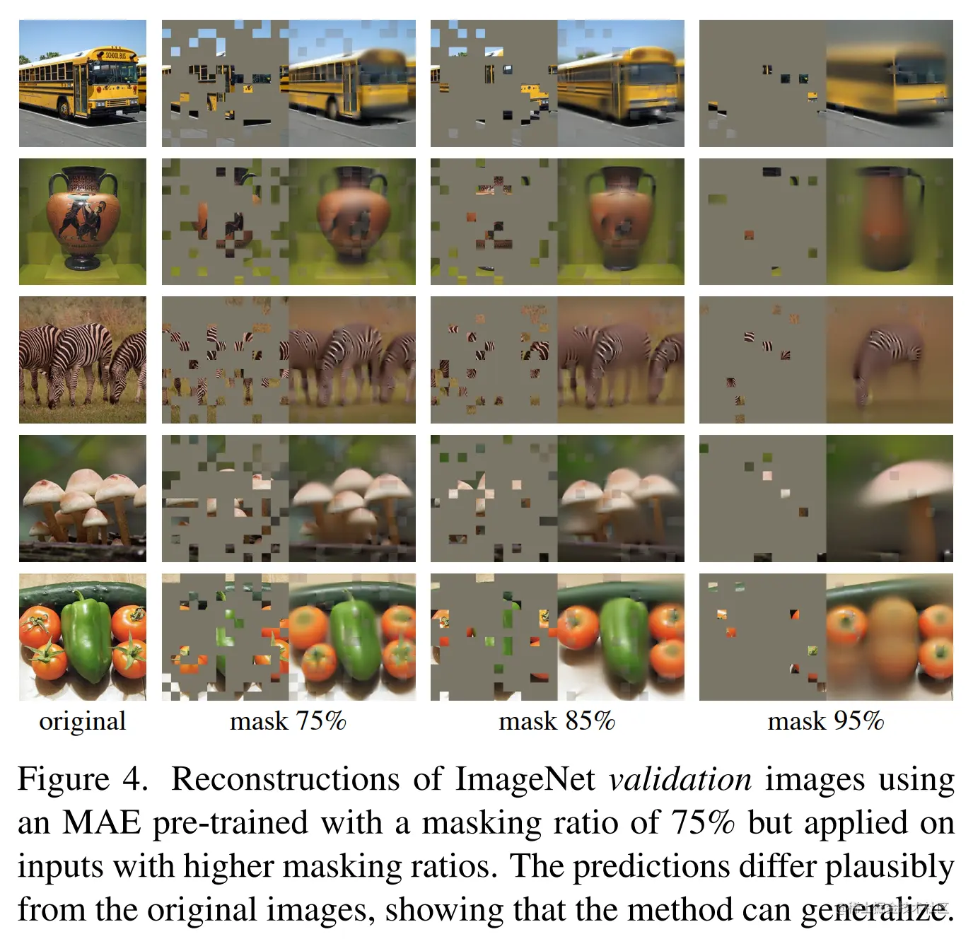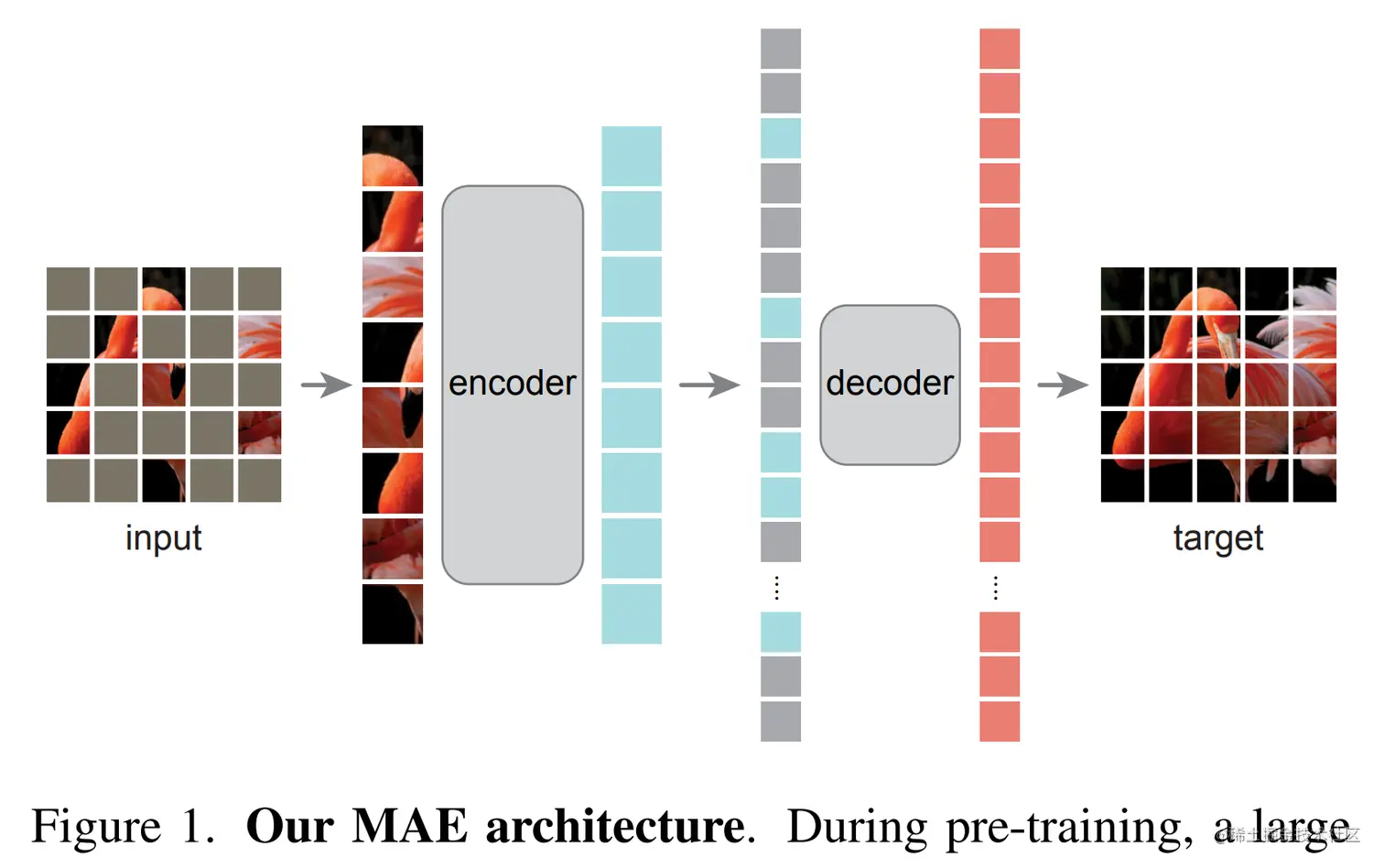 论文简介:Our MAE approach is simple: we mask random patches of the input image and reconstruct the missing pixels. / 我们的 MAE 方法很简单:我们屏蔽输入图像的随机补丁并重建丢失的像素。