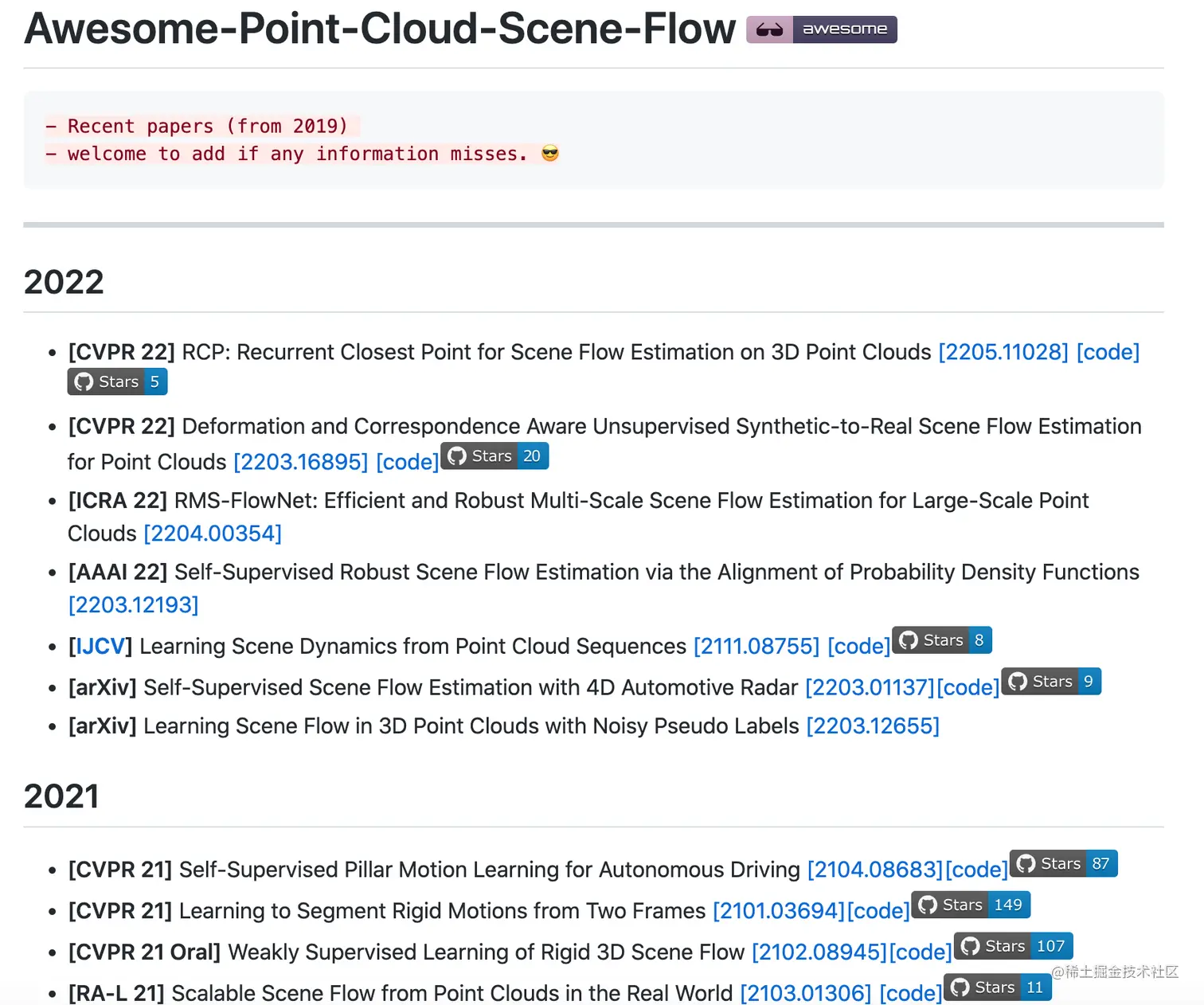 资源列表:Awesome-Point-Cloud-Scene-Flow - 点云场景流相关论文列表