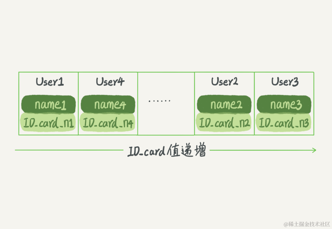 - 非主键索引的叶子节点内容是主键的值,在 InnoDB 里,非主键索引也被称为二级索引(secondary index)。