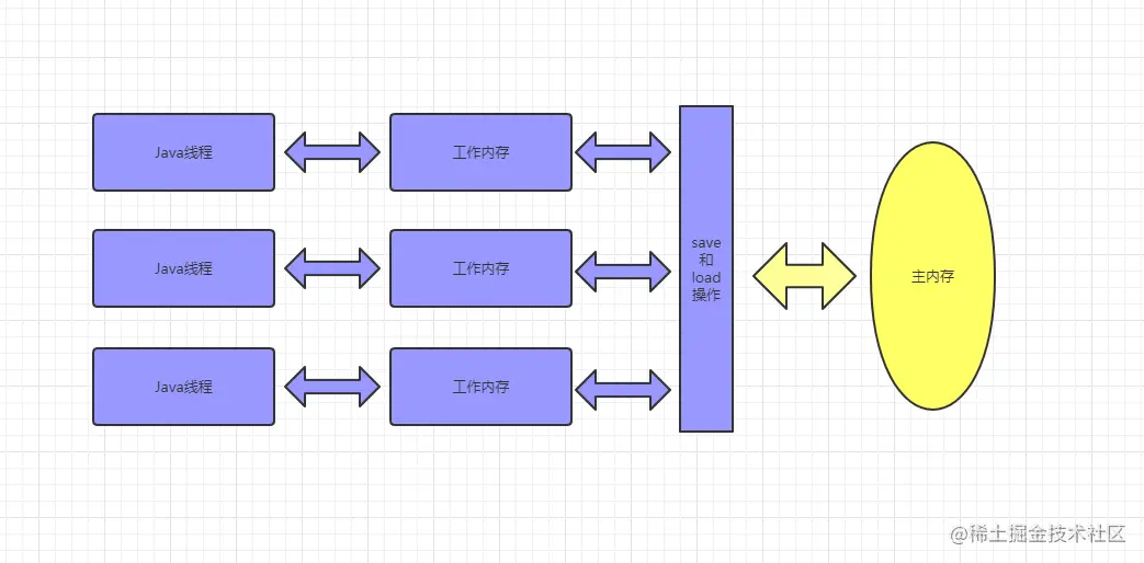 Java内存模型。明确定义了不同的线程之间,通过哪些方式,在什么时候可以看到其他线程保存在共享变量中的值;以及如何对共享变量进行同步。JMM规范的是线程间的交互操作。