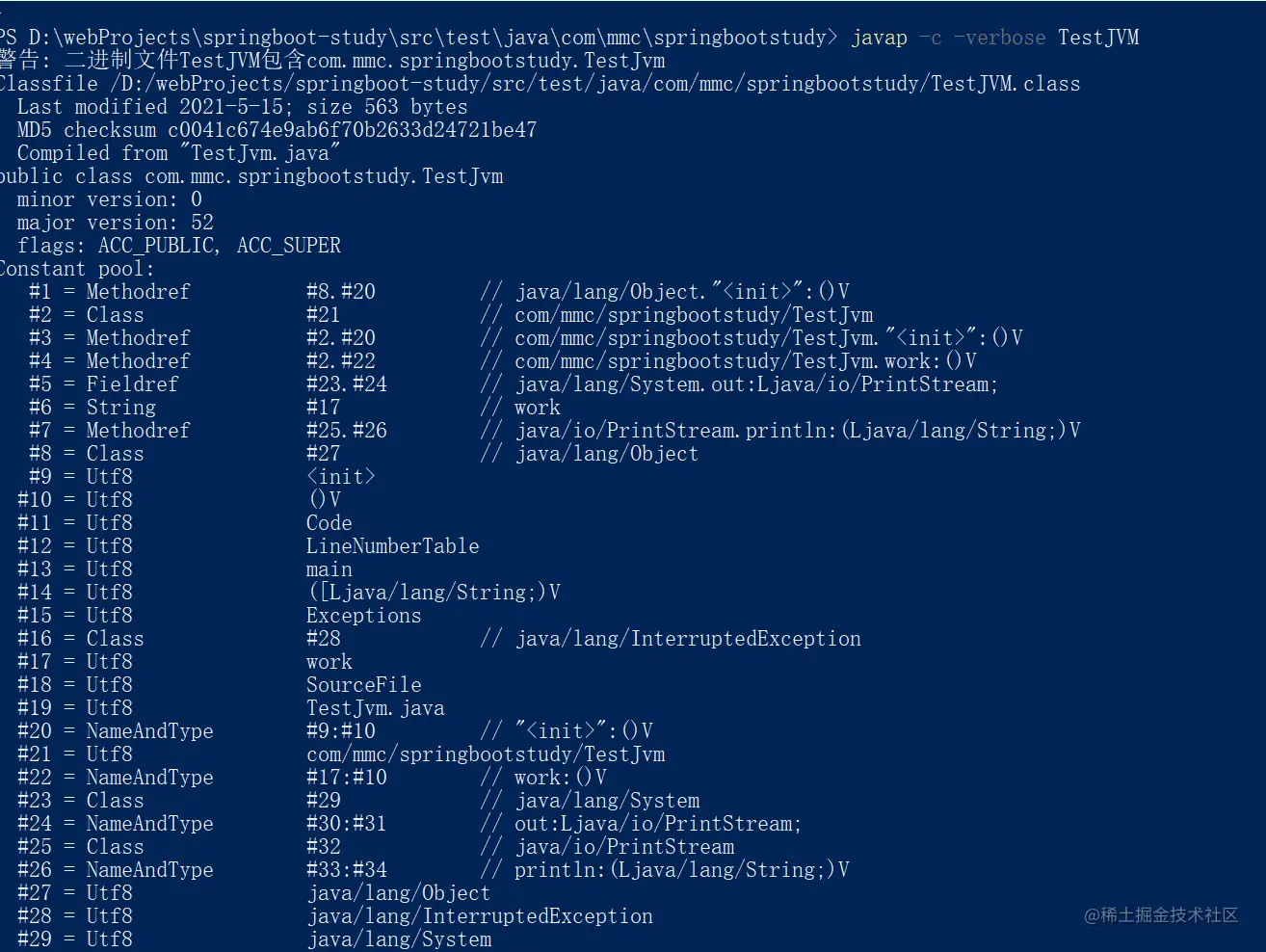 javap -c -verbose TestJVM