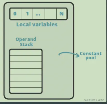 操作数栈:每个帧都包含了一个后入先出的栈,称为操作数栈。