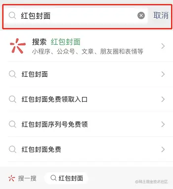 第一步: 在手机上打开微信,在上方的搜索栏输入“红包封面”,就可以进去领取红包封面了。