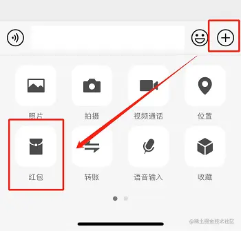 第二步: 打开聊天框,点击右下方的“+”号,然后点击【红包】。