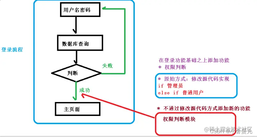 (2)通俗描述:不通过修改源代码方式,在主干功能里面添加新功能