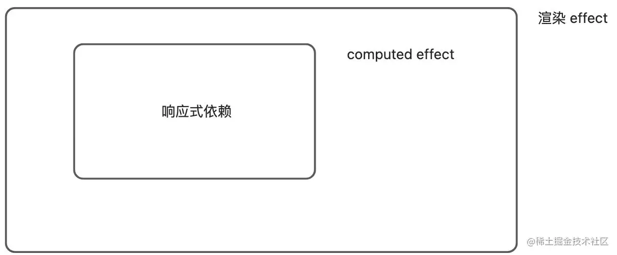 - 变量 age 收集了 computedEffect,而对于 computed 来说它收集渲染 effect。