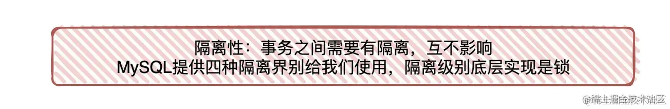 - 隔离性由数据库隔离级别供我们选择,分别有read uncommit,read commit,repeatable read,serializable