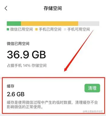 步骤四: 然后在存储空间中就能看到清理缓存的占用空间大小,点击后面的【清理】即可。
