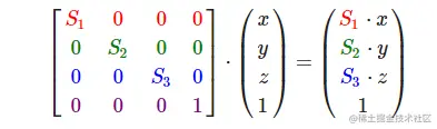 s1:x轴方向的缩放量;s2:y轴方向的缩放量;s3:z轴方向的缩放量