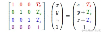 tx:x轴方向的平移量;ty:y轴方向的平移量;tz:z轴方向的平移量
