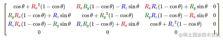 (Rx, Ry, Rz)表示任意轴,θ表示旋转的角度