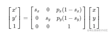 点(x,y)相对于(px,py)点缩放;sx为x轴方向的缩放量;sy为y轴方向的缩放量
