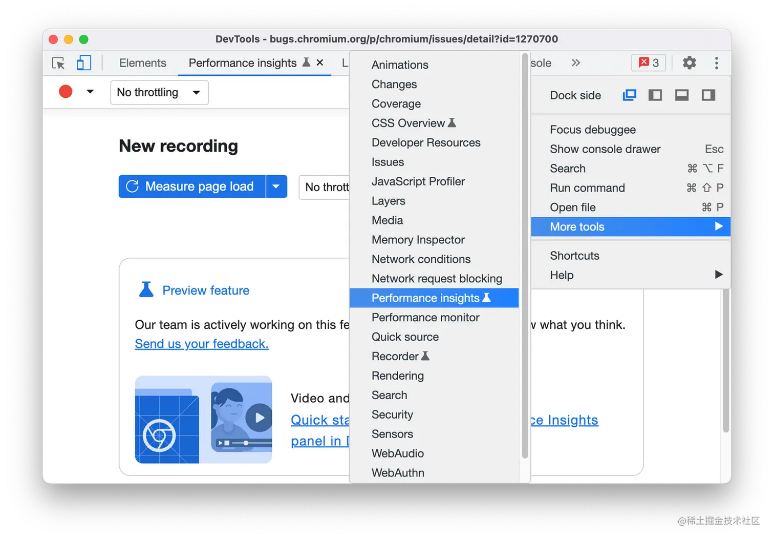 - 点击右边三个竖点 -> More tools -> Performance insights