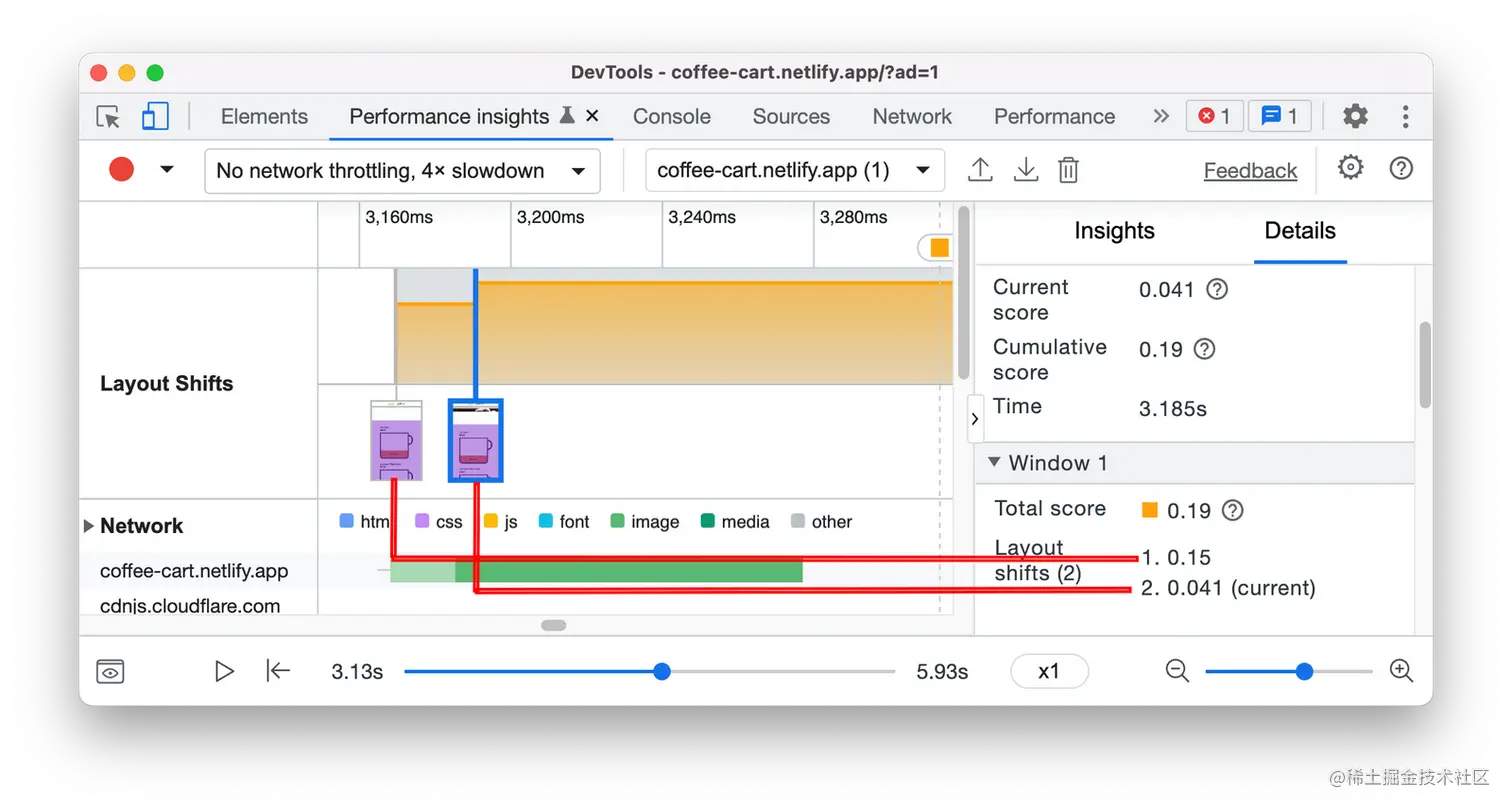 累计布局偏移(CLS)是核心Web指标之一。在布局偏移轨道上可以发现潜在的布局偏移问题和原因