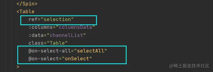 1)给Table页增加Select属性,增加选择框: