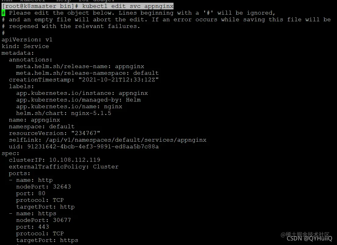 [root@k8smaster bin]# kubectl edit svc appnginx
