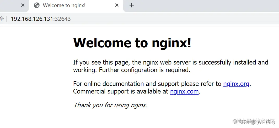 根据前面自动生成的对外访问端口,尝试访问: