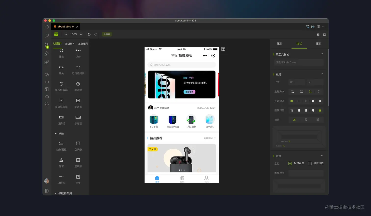 APICloud Studio3可视化工具秉承低代码的设计理念,让开发者可以通过拖拽搭建积木的方式,所见即所得地快速构建生成应用静态页面,并支持同步实时生成AVM跨端代码;工具内置丰富的UI样式组件,节省开发者大量的页面构建时间,让开发者能够更加专注于应用业务逻辑的开发,进一步帮助企业降本增效。