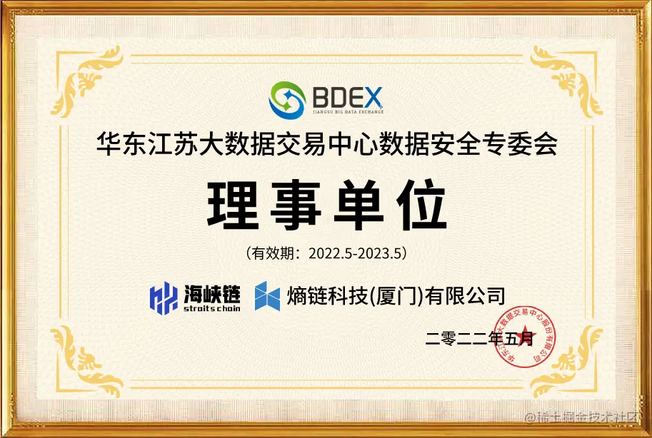 “海峡链”的运营主体熵链科技(厦门)有限公司专注于区块链技术底层研发、区块链应用场景拓展,积极探索区块链在政务、实体产业及元宇宙商业等领域提供综合解决方案与技术服务,经专家评审团的严格审核,最终授予华东江苏大数据交易中心数据安全专委会新理事单位,并受邀参加了“华东江苏大数据交易中心”、“国家工业信息安全发展研究中心”、“国家金融科技测评中心”发起的《数据要素安全流通白皮书》(以下简称:白皮书)编撰工作。