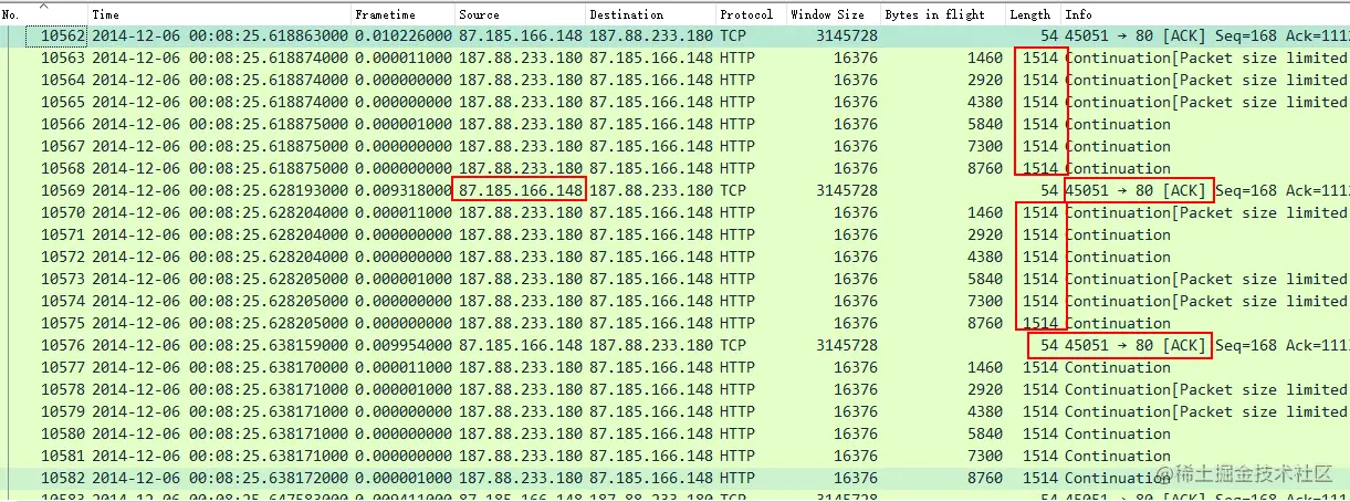 如描述一样,此文件确实是在客户端 87.185.166.148 上抓包,RTT 0.008536s ,MSS 均为 1460,且两端均支持 Window scale 及 SACK 等。