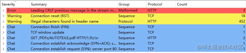 快速浏览下 专家信息,发现异常的干净,并没有丢包引起的重传、乱序之类的问题,所以下载慢的问题会是什么呢。