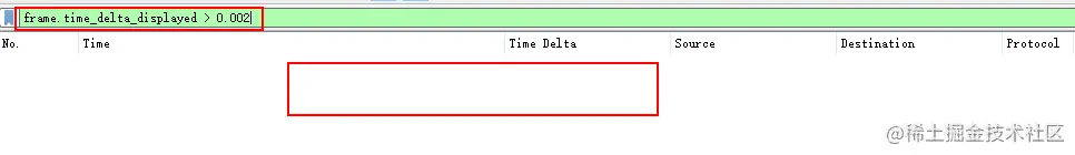 那么,有人问非要用 frame.time_delta_displayed > xxx 过滤行不行,嗯,也行,必须通过显示帧 1 来开始工作,例如使用显示过滤器 frame.number == 1 || frame.time_delta_displayed > xxx 。