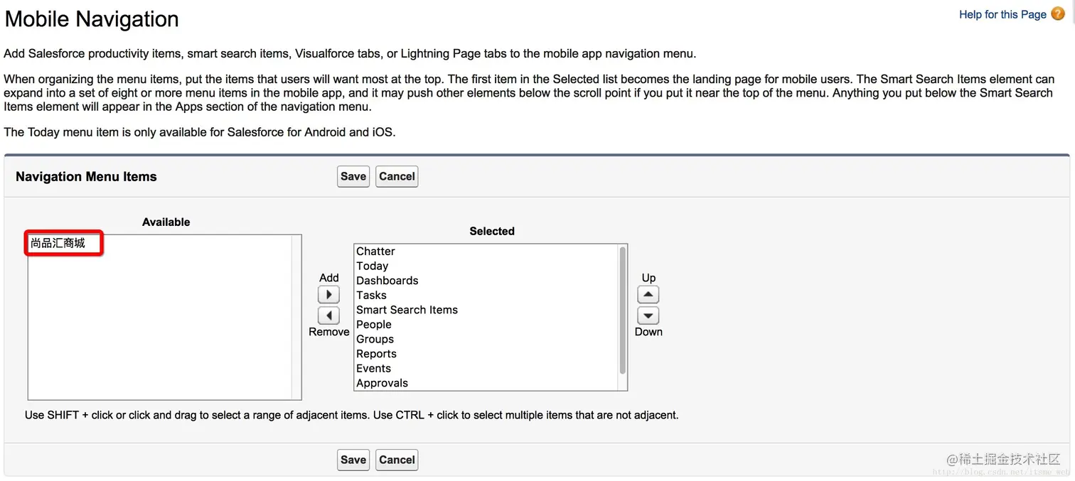 将该Tab拖到Salesforce1 Menu中展示: