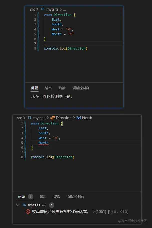console.log(Direction) // 键为2时的结果是West。键为2,值为East的被覆盖掉了