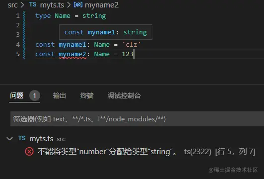 上面的例子中,使用了类型别名,所以后续可以直接使用类型别名Name来当成string使用。