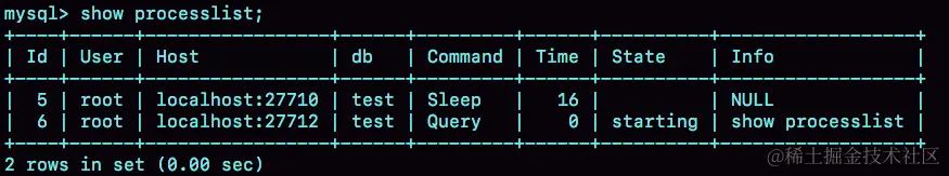 show processlist //查看所有连接