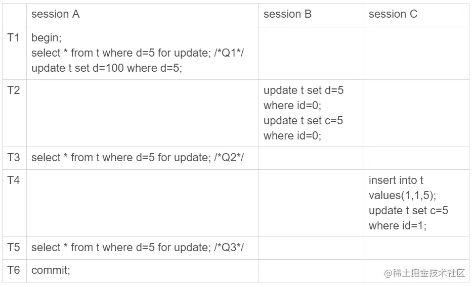 Q1要锁住所有d=5的行,但是session B与session C破坏了这个语义
