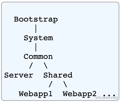 shared.loader(conf/catalina.properties)下的classes文件、资源文件和jar包,对所有web应用程序可见,并可用于在所有web应用程序之间共享代码。但是,对此共享代码的任何更新都需要Tomcat重新启动 - WebappX 单个Tomcat实例中的每个Web应用程序创建的类加载器。加载Web应用程序的/Web-INF/Class目录中的所有未打包类和资源,再加上Web应用程序/Web-INF/lib目录下JAR文件中的类和资源,对此web应用程序都是可见的,而对其他类则不可见。