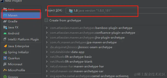 左侧选择Maven,右侧选择JDK的就好了。下面的“Create from archetype”代表的是选择一个pom模板,我这里建的是空项目所以不选,除非你特别笃定否则不要选择,会有意外的惊喜哦。