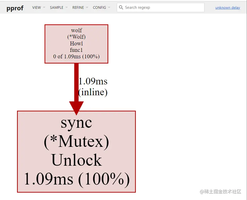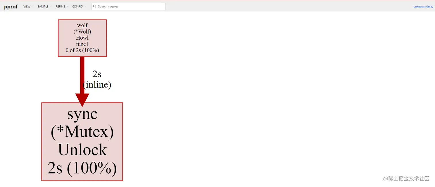 go tool pprof -http=:8080 "http://localhost:6060/debug/pprof/mutex" - 可以发现Goroutine足足等待了1秒才解锁,因此导致锁竞争的产生。将等待的1秒注释后,锁的竞争导致的阻塞时间显著减少。