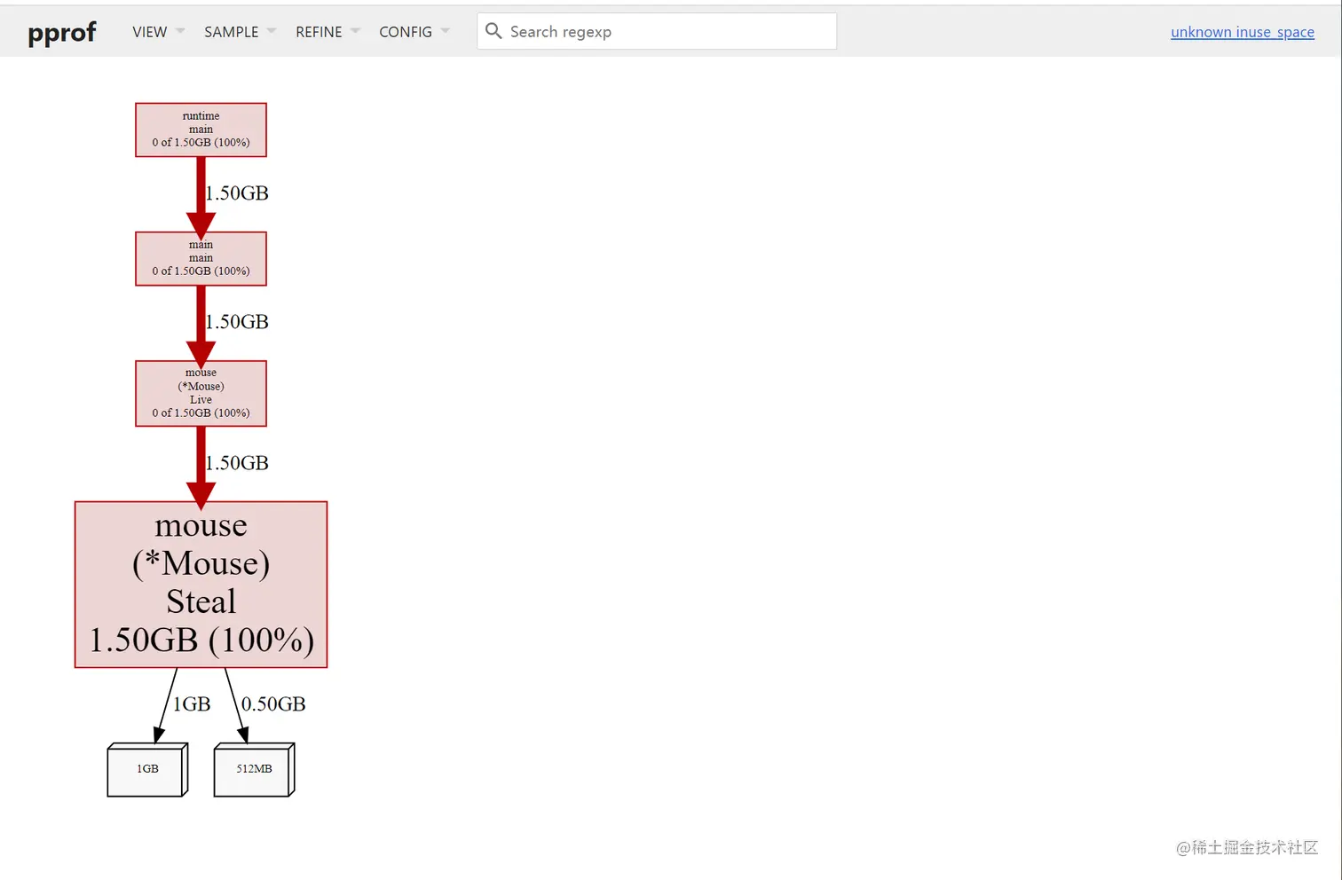 go tool pprof -http=:8080 "``http://localhost:6060/debug/pprof/heap``",通过-http=:8080参数,可以开启pprof自带的Web UI,可以看到内存占用情况。在VIEW中还可以切换不同的视图。 - 可以看出,内存使用异常出现在上图代码,故将其注释掉。