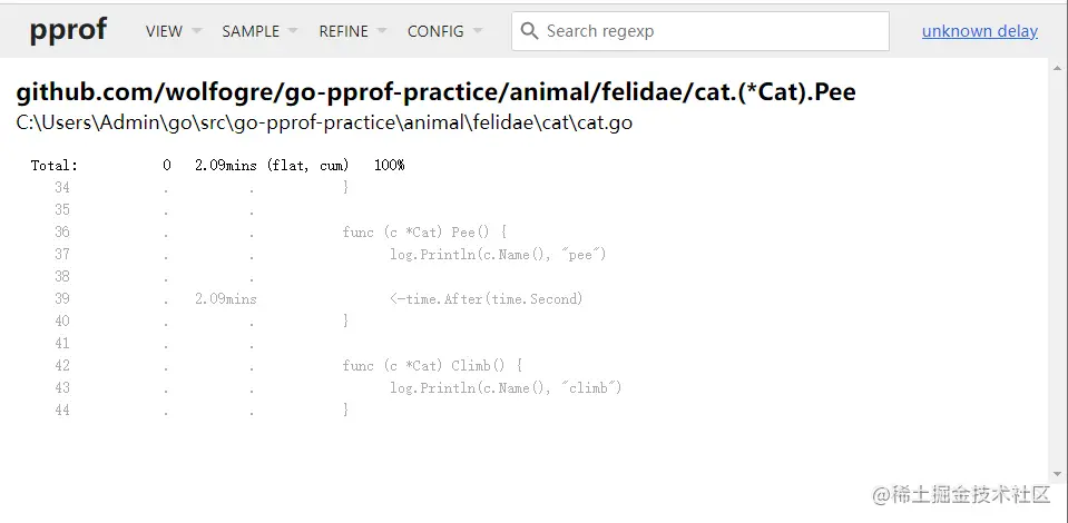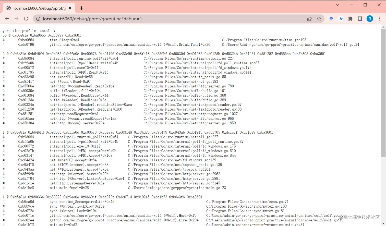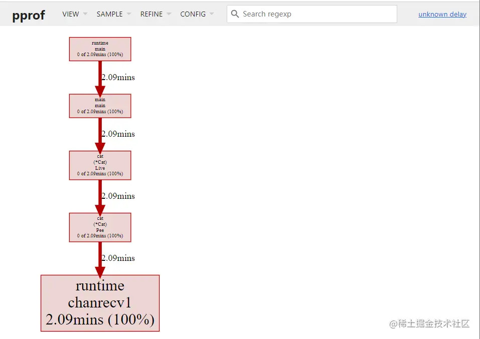 go tool pprof -http=:8080 "``http://localhost:6060/debug/pprof/block``" 在程序中,除了锁的竞争会导致阻塞之外,很多逻辑如读取一个Channel也会导致堵塞。
