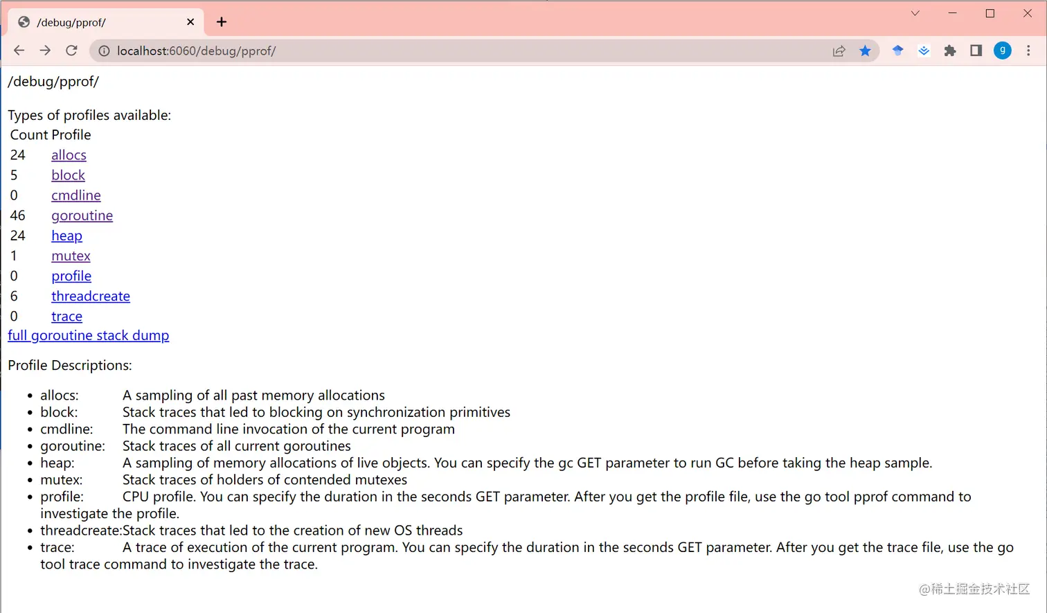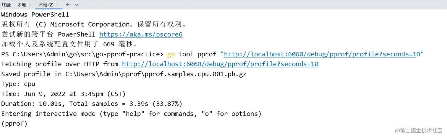 go tool pprof "``http://localhost:6060/debug/pprof/profile?``seconds=10"会自动下载profile文件并分析